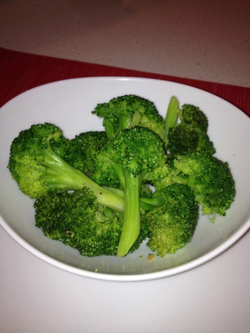 2. Sauté garlic in EVOO until nicely browned, then add broccoli and continue sautéing over medium heat for about 3 minutes, or really until desired degree of doneness. ENJOY!